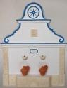 This piece is from the collection of hand painted replicas of fountains from Portugal. From the atelier of José Carboila you find this beautiful fountain hand painted and created as a miniature copy of a real fountain you can find in the fishing village of Ericeira. It’s a very old and famous fountain with several symbols as the star with eight sides and the engraved stone up top. It has two brass tubes from where the water runs out and two hand made earthen jugs hand painted in the traditional blue color. It’s a very unusual fountain that will surely please you! Numbered (number of collection), signed and stamped by the gifted author, the artisan Jose Carboila as a proof of authenticity.
